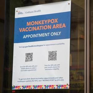 這是9月6日在美國紐約拍攝的一處猴痘疫苗接種點(diǎn)的告示。