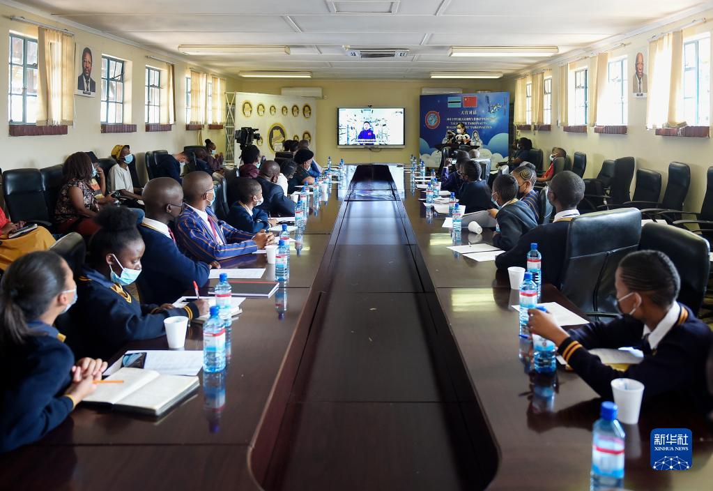 9月6日,人們在博茨瓦納哈博羅內在線(xiàn)觀(guān)看“天宮對話(huà)”活動(dòng)。