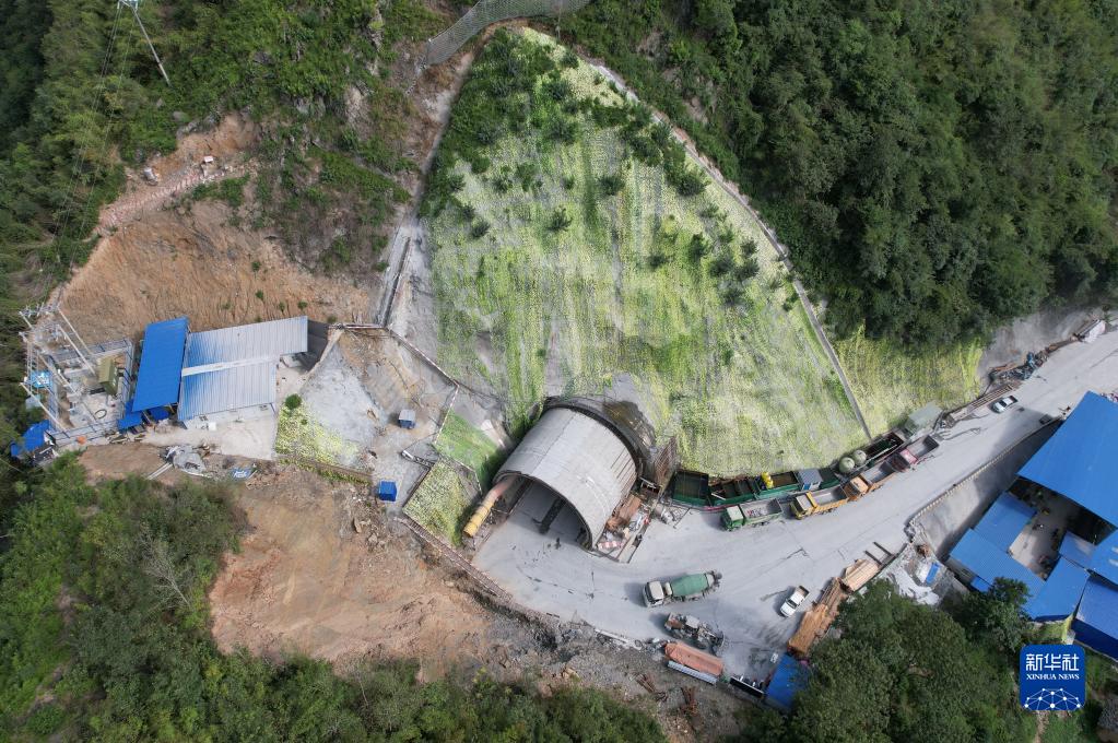 施工中的西康高鐵一處隧道口(9月6日攝,無(wú)人機照片)。