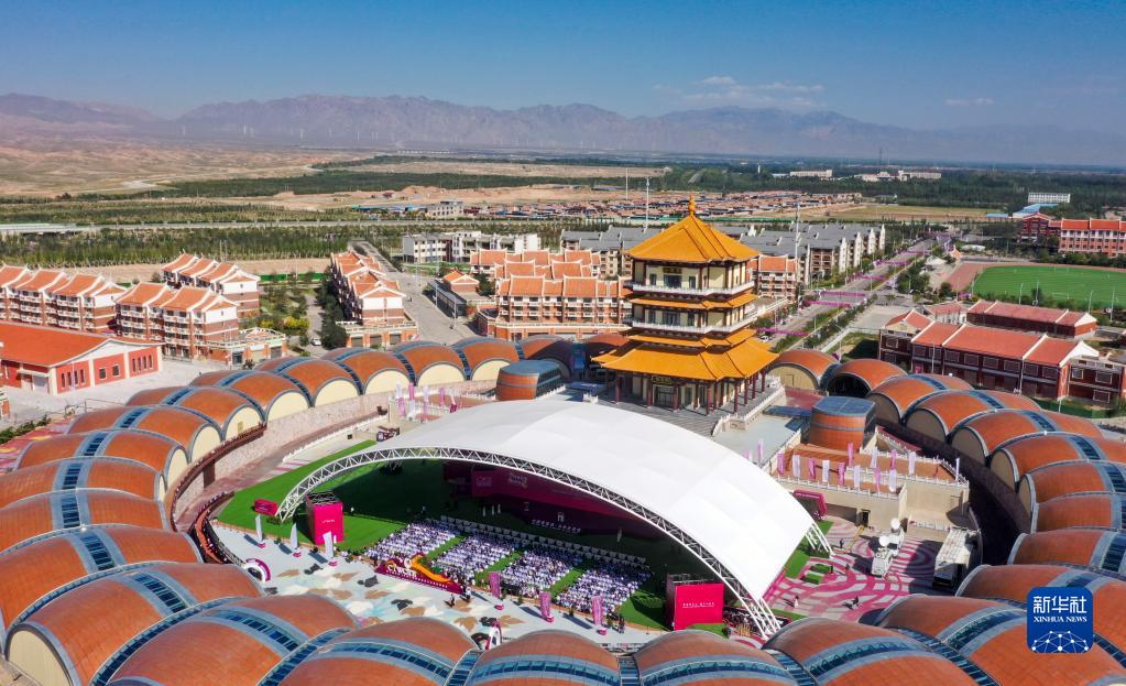 9月7日,第二屆中國(寧夏)國際葡萄酒文化旅游博覽會(huì )在寧夏銀川市閩寧鎮開(kāi)幕(無(wú)人機照片)。