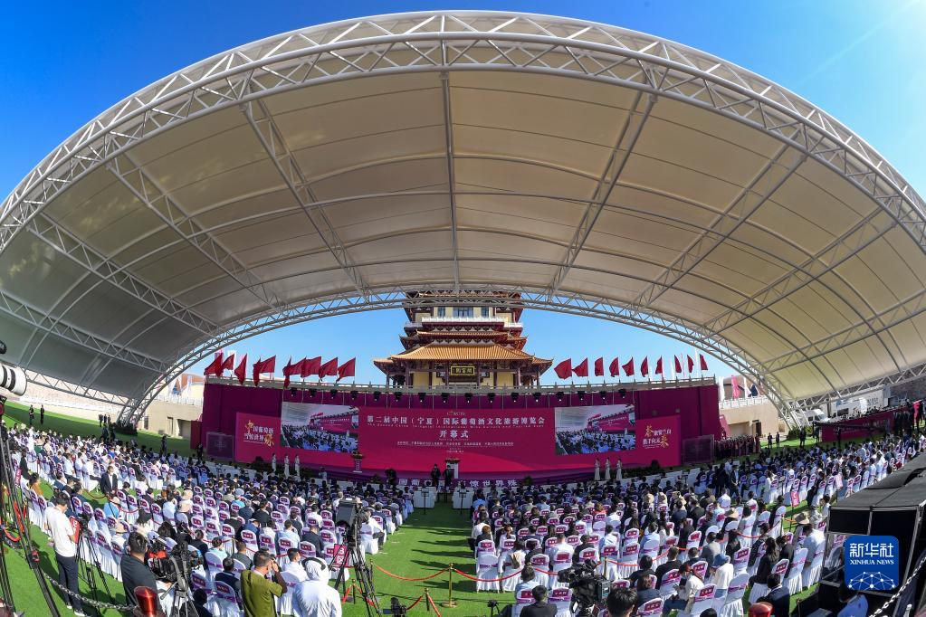 這是第二屆中國(寧夏)國際葡萄酒文化旅游博覽會(huì )開(kāi)幕式現場(chǎng)(9月7日攝)。
