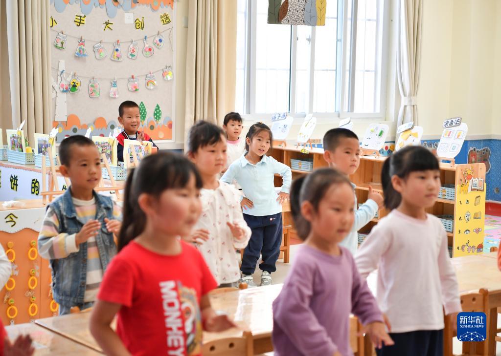 9月5日,小朋友在麟游縣九成宮鎮南坊新城移民搬遷安置社區配建的幼兒園內活動(dòng)。