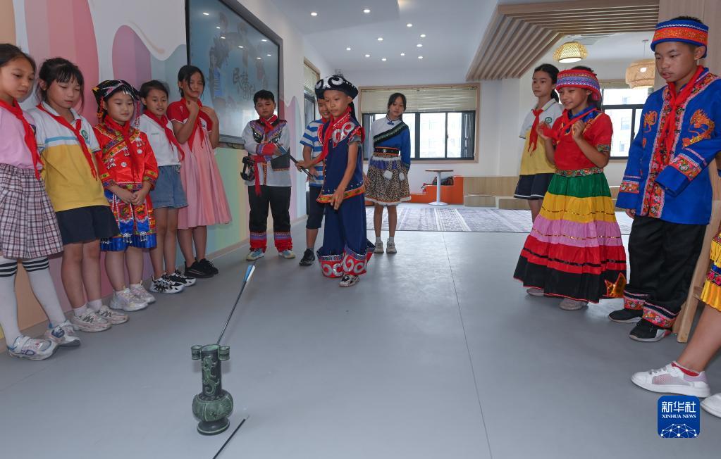 當日,浙江省湖州市吳興區東林鎮邀請在東林鎮就讀的漢族、彝族、鄂倫春族、羌族、畬族、布依族、苗族等多個(gè)民族的學(xué)生參加“中秋月圓 共話(huà)民族情”活動(dòng)。學(xué)生們通過(guò)投壺、做花燈、猜燈謎等互動(dòng)游戲,感悟中華傳統文化、增進(jìn)友誼。