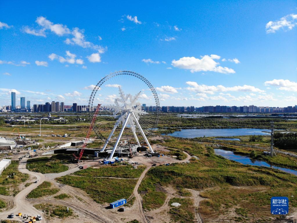 這是9月7日拍攝的哈爾濱冰雪大世界摩天輪(無(wú)人機照片)。