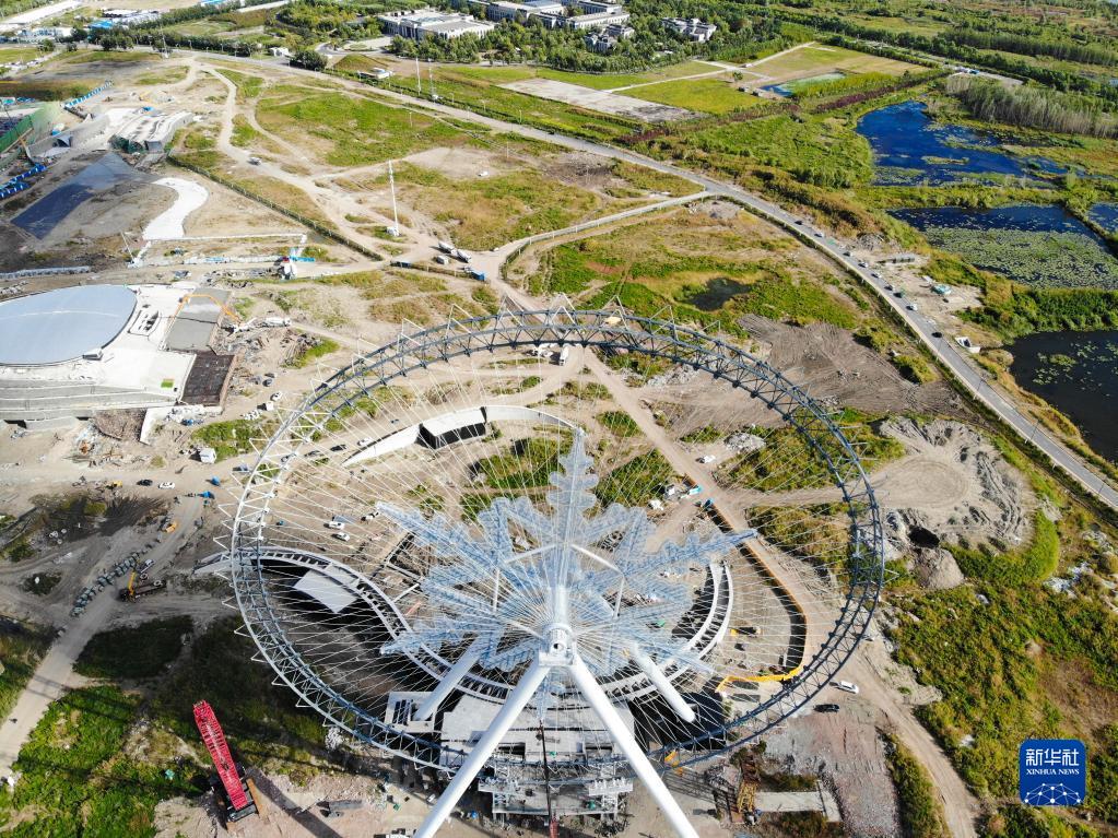 這是9月7日拍攝的哈爾濱冰雪大世界摩天輪(無(wú)人機照片)。 新華社記者 王松 攝