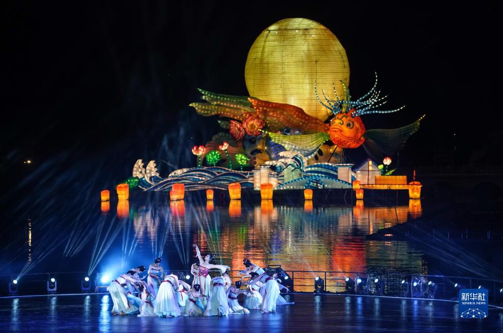 9月8日,2022海峽兩岸(昆山)中秋燈會(huì )在江蘇省昆山市周莊古鎮舉行亮燈儀式,本屆燈會(huì )以“花開(kāi)并蒂 燈映兩岸”為主題,即日起至10月7日在周莊、錦溪等四個(gè)燈區展出。新華社記者 楊磊 攝
