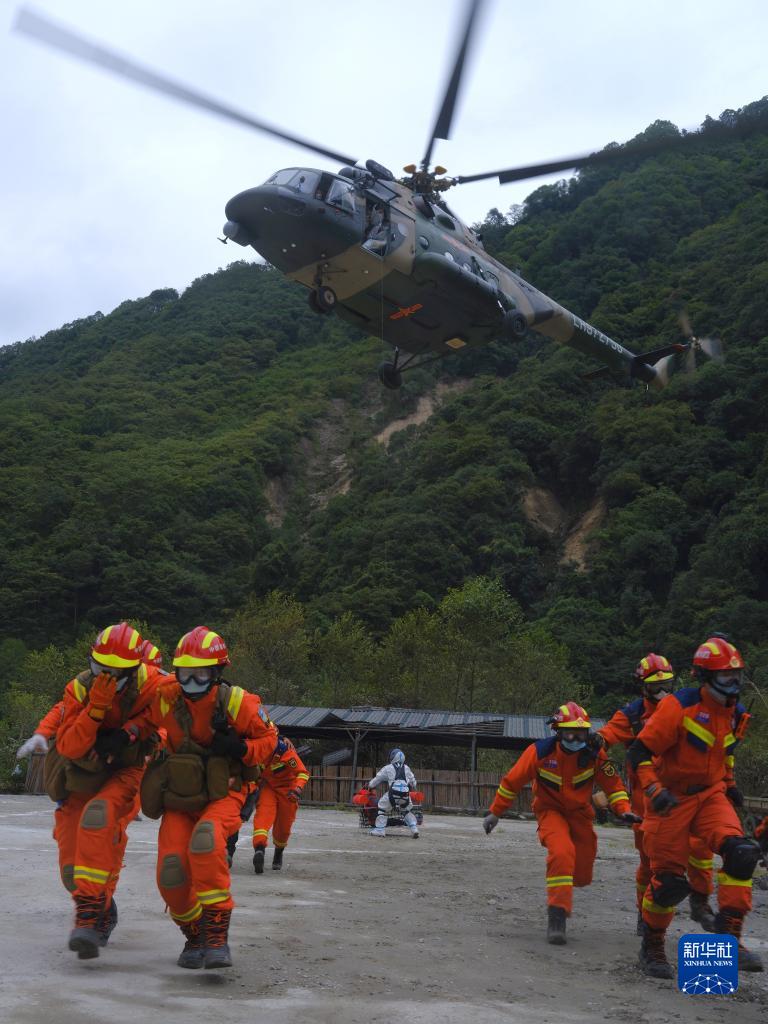 9月6日,西部戰區陸軍第77集團軍某陸航旅官兵在進(jìn)行傷員吊裝轉移。新華社發(fā)(程雪力 攝)
