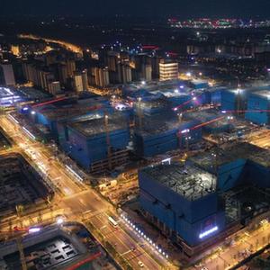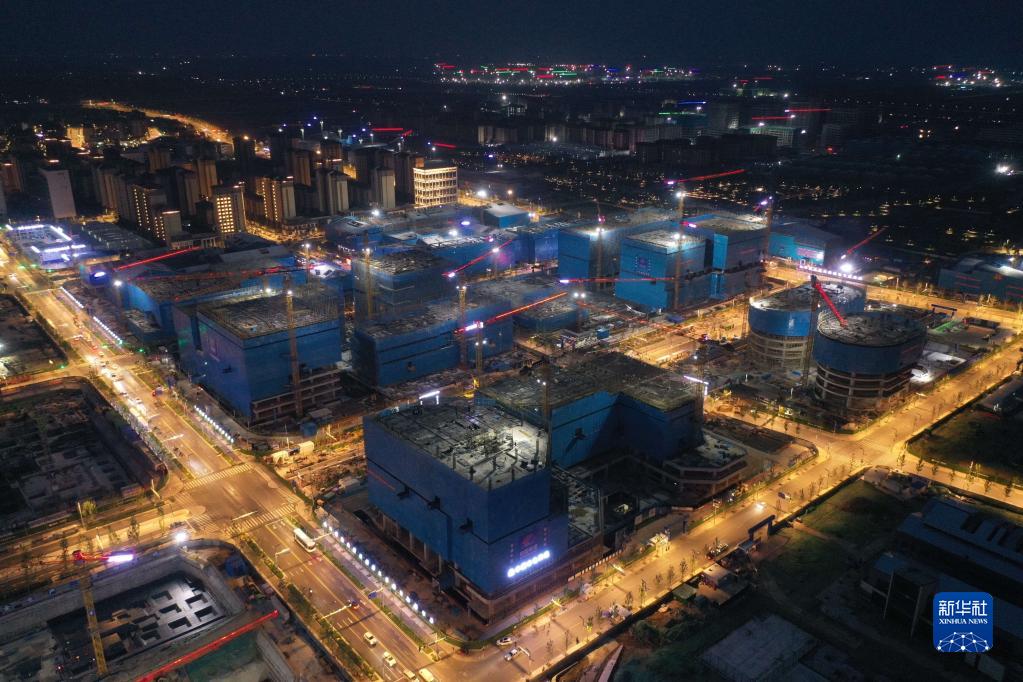 雄安新區容東片區雄安·電建智匯城建設項目夜景(2022年8月17日攝,無(wú)人機照片)。