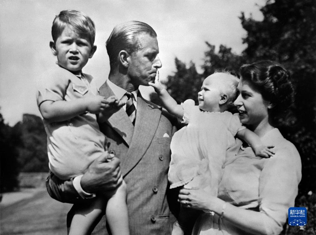 這張攝于1951年8月的資料照片顯示的是伊麗莎白二世(右一)和丈夫菲利普親王(左二)、查爾斯王子(左一)及安妮公主(右二)。