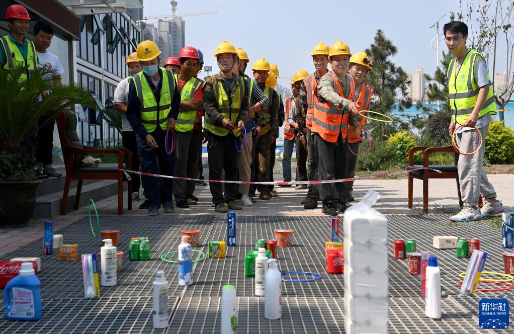 9月9日,在中建二局陜西分公司咸陽(yáng)高鐵新城項目部,建設者在進(jìn)行趣味游戲。