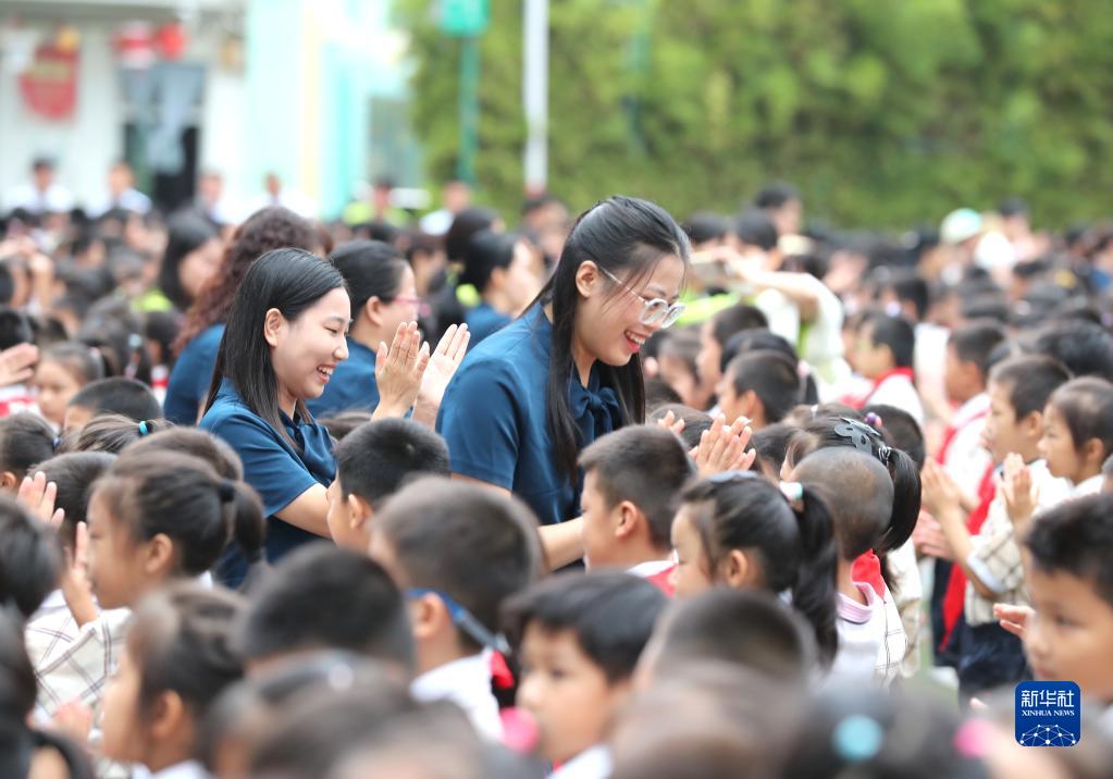 9月9日,廣西南寧市逸夫小學(xué)的師生在活動(dòng)上擊掌。