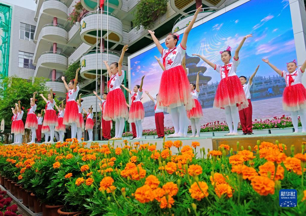 9月9日,廣西南寧市逸夫小學(xué)的學(xué)生在活動(dòng)上表演舞蹈。