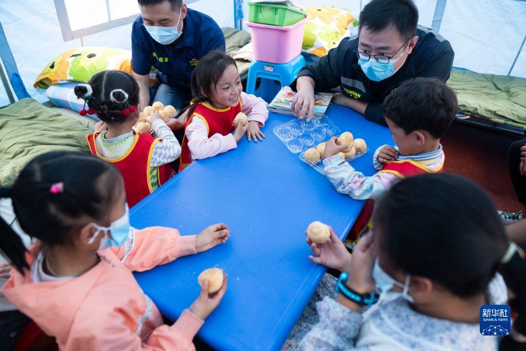 四川省甘孜州瀘定縣6.8級地震發(fā)生后,在雅安市石棉縣的臨時(shí)安置點(diǎn)里,老師和志愿者帶領(lǐng)孩子們學(xué)習、畫(huà)畫(huà)、做游戲,在這個(gè)特殊時(shí)期安撫和陪伴他們。