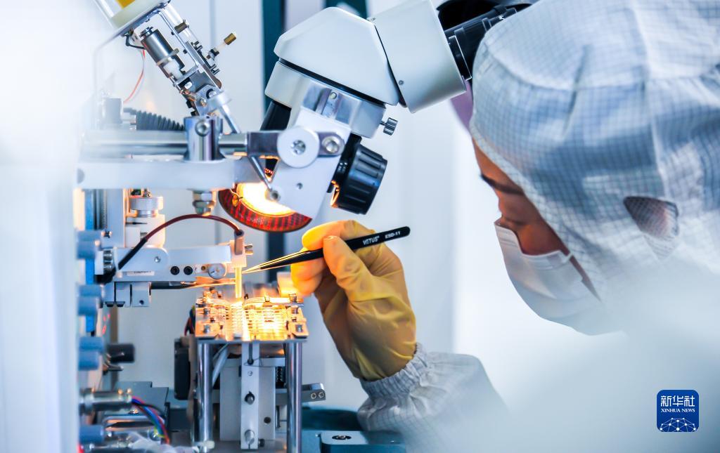 山西中科潞安紫外光電科技公司技術(shù)人員在工作(2020年3月11日攝)。新華社發(fā)