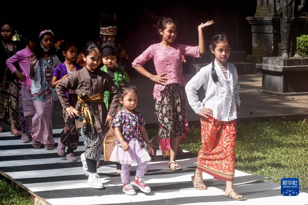 這是9月4日在印度尼西亞南唐格朗的普斯波多約群島文化中心拍攝的可巴雅服裝秀現場(chǎng)。