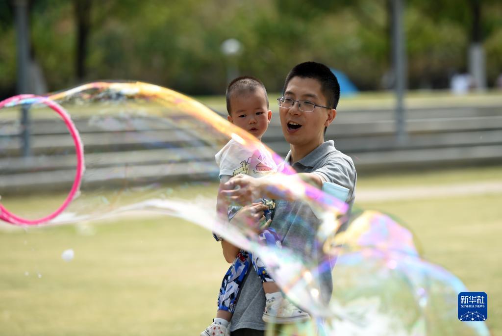 9月10日,市民帶著(zhù)小朋友在安徽省合肥市綠軸公園玩耍。