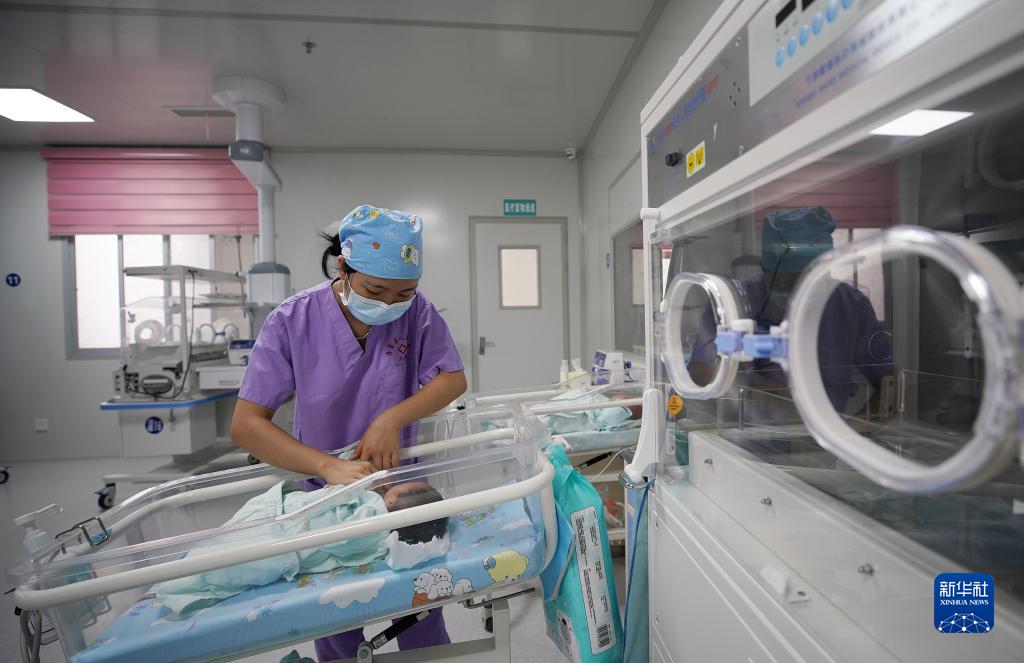 9月10日,護士在貴州黔東南苗族侗族自治州丹寨縣人民醫院新生兒護理室護理新生兒。