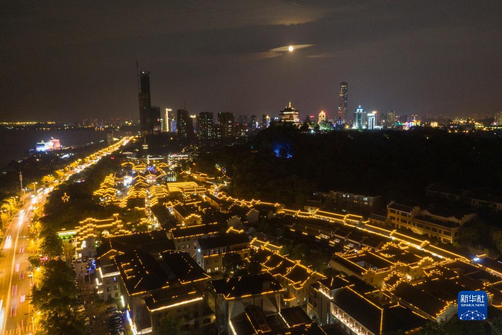 9月10日在江蘇鎮江西津渡拍攝的月亮(無(wú)人機拍攝)。