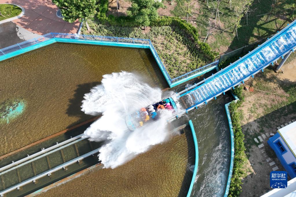 9月11日,游客在江蘇淮安方特東方欲曉游玩(無(wú)人機照片)。