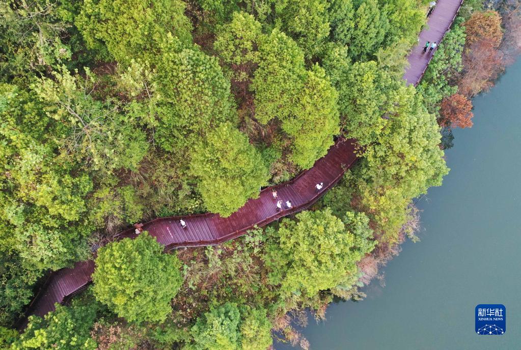 9月11日,人們在貴州省遵義市正安縣北郊湖公園游玩。