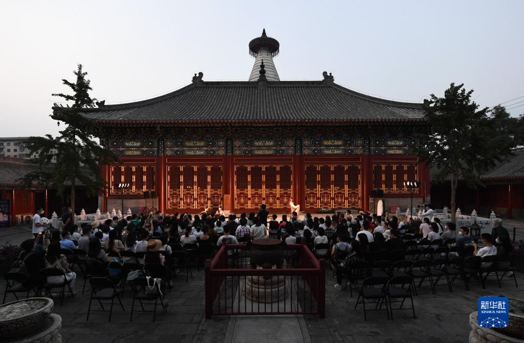 9月11日,觀(guān)眾在北京白塔寺內欣賞民樂(lè )表演。