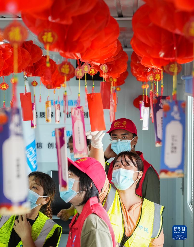 9月11日,建設者在中建三局華東公司上海分公司君實(shí)生物項目部開(kāi)展的“工地慶中秋 佳節情意濃”主題活動(dòng)上猜燈謎。