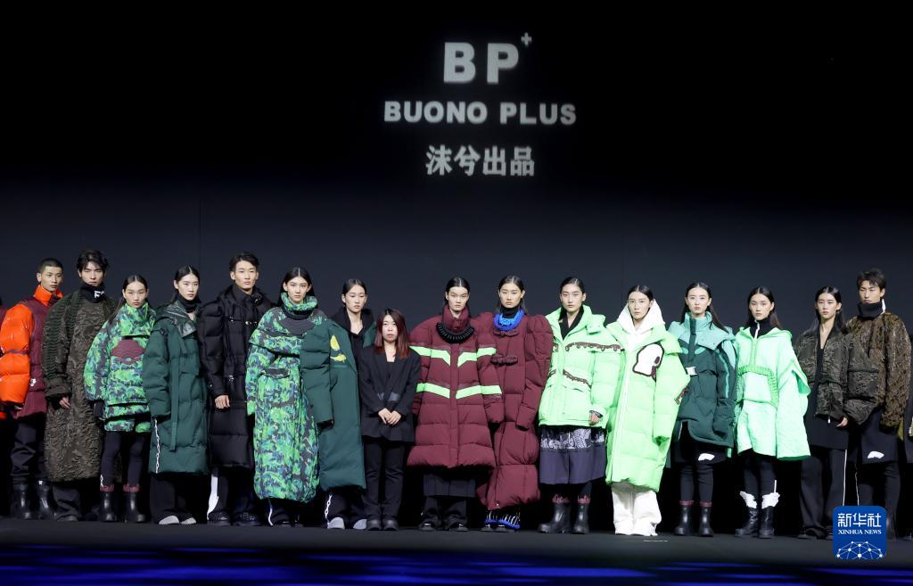 9月11日,設計師姜佳(中)和模特在北京中國國際時(shí)裝周(2023春夏系列)舉行的“BUONO PLUS·姜佳”時(shí)裝發(fā)布會(huì )上謝幕。