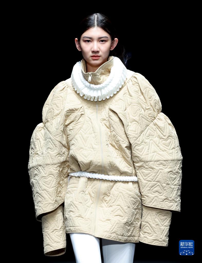 9月11日,模特在北京中國國際時(shí)裝周(2023春夏系列)舉行的“BUONO PLUS·姜佳”時(shí)裝發(fā)布會(huì )上展示設計師姜佳設計的羽絨系列服裝。
