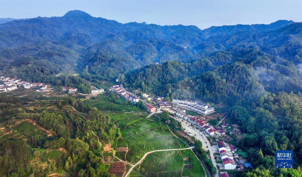 9月12日拍攝的西鄉縣峽口鎮山林、村舍與茶園(無(wú)人機照片)。