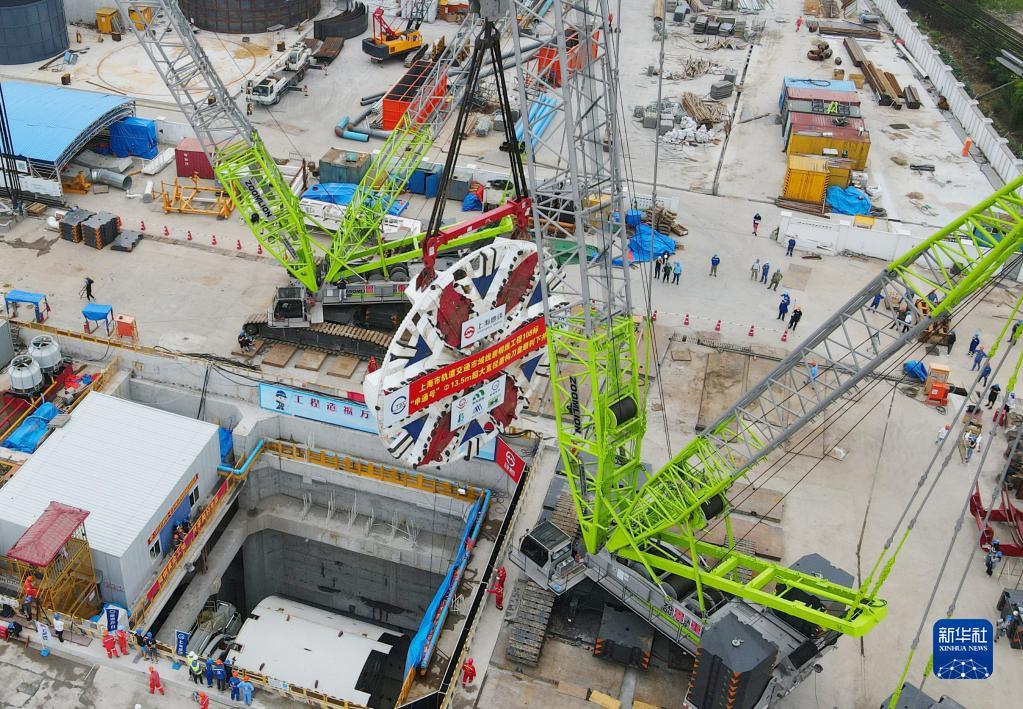 當日,在位于上海長(cháng)興島的軌道交通崇明線(xiàn)108標施工現場(chǎng),重達308噸的“申通號”盾構機刀盤(pán)吊裝下井作業(yè)順利完成?!吧晖ㄌ枴倍軜嫏C總長(cháng)148米,當日完成吊裝下井的刀盤(pán)直徑13.5米,由一個(gè)中心塊、6個(gè)主刀臂和6個(gè)輔刀臂焊接拼裝組成?!吧晖ㄌ枴倍軜嫏C將完成崇明線(xiàn)南港越江段全長(cháng)7.74千米的區間隧道掘進(jìn)施工,這也將是上海軌道交通穿越長(cháng)江的第一條隧道。