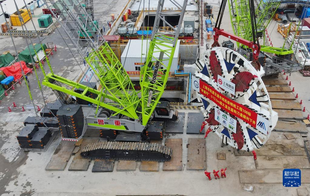上海:軌道交通崇明線(xiàn)“申通號”盾構機刀盤(pán)順利下井