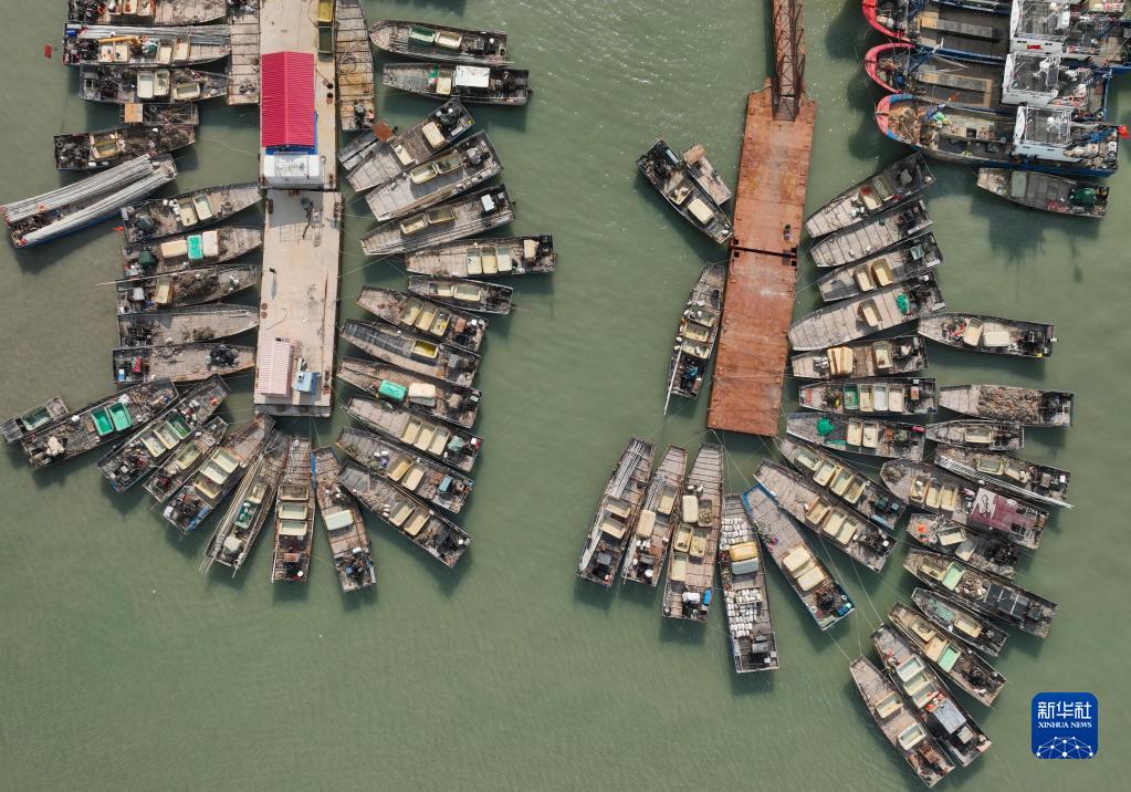 9月13日,江蘇省連云港市高公島國家一級漁港內,漁船進(jìn)港避風(fēng)(無(wú)人機照片)。