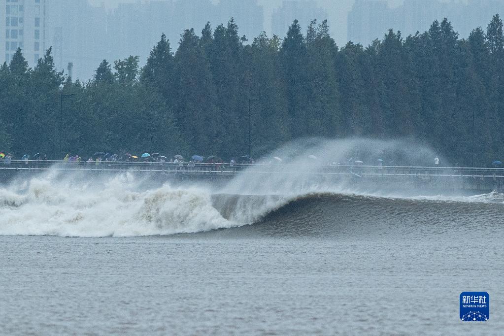 當日是農歷八月十八,每年農歷八月十八是觀(guān)賞錢(qián)塘江潮水的最佳時(shí)機。今年,受臺風(fēng)“梅花”影響,錢(qián)塘江在風(fēng)雨之中迎來(lái)大潮。
