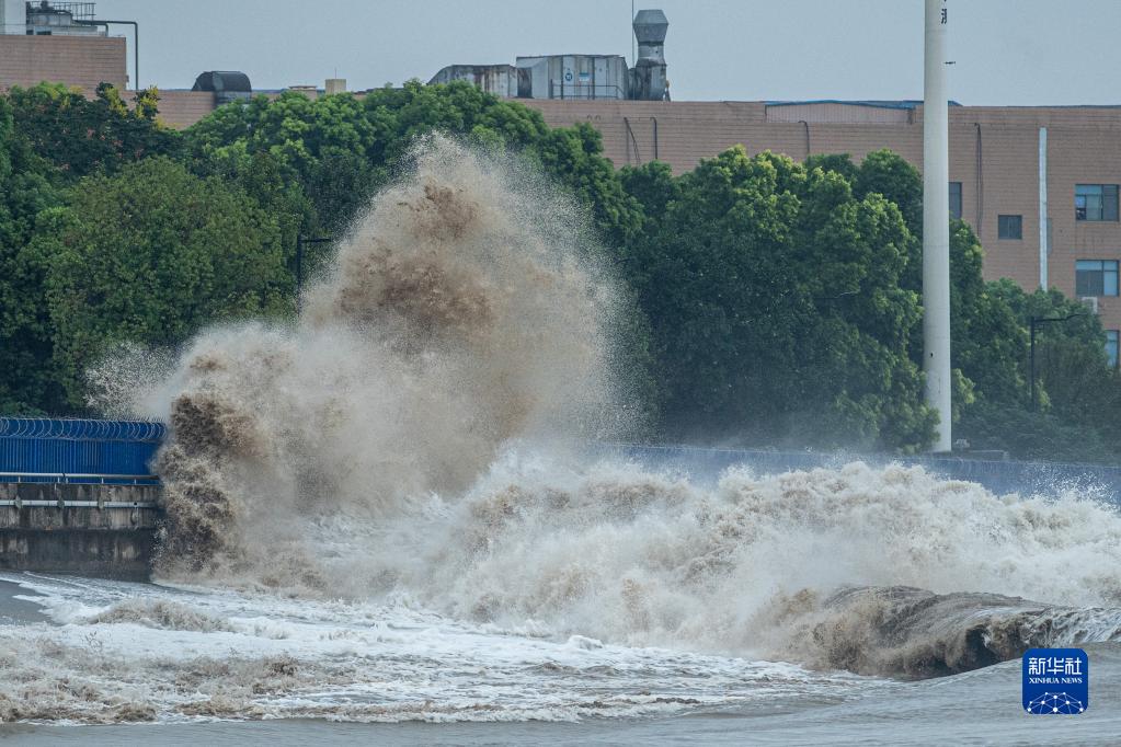 9月13日,潮水沖擊杭州下沙七格堤壩形成巨浪。