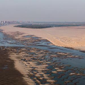 長(cháng)江武漢段水位持續消退 大片灘涂露出江面