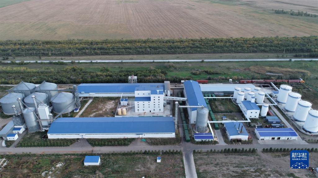 這是9月2日在哈薩克斯坦北哈薩克斯坦州拍攝的愛(ài)菊農產(chǎn)品物流加工園區(無(wú)人機照片)。新華社發(fā)(奧斯帕諾夫 攝)