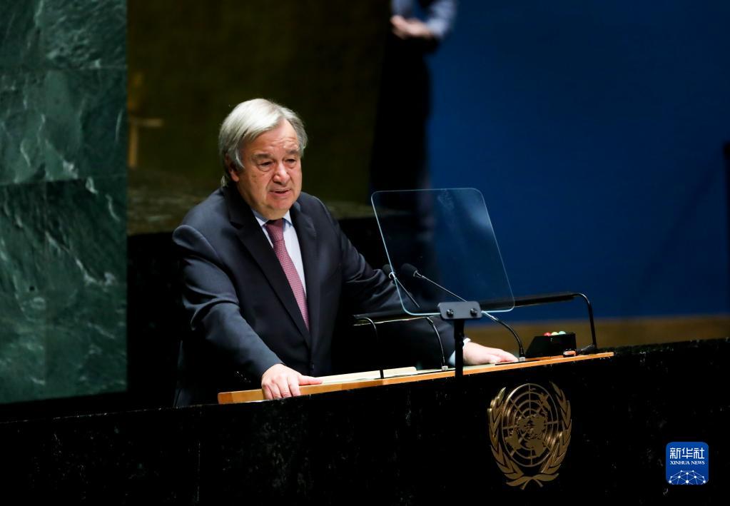 9月13日,在位于紐約的聯(lián)合國總部,聯(lián)合國秘書(shū)長(cháng)古特雷斯在第77屆聯(lián)合國大會(huì )第一次全會(huì )上致辭。