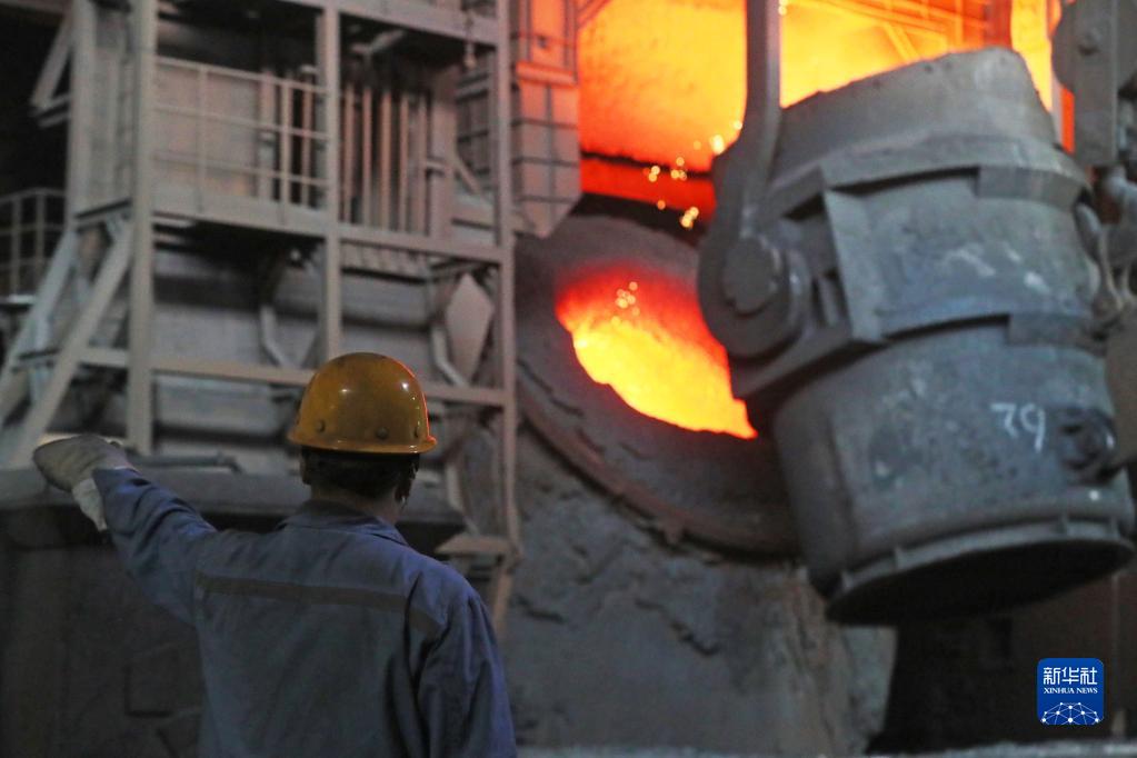 2021年8月18日,在本鋼板材煉鋼廠(chǎng),煉鋼作業(yè)區工人在進(jìn)行轉爐冶煉作業(yè)。新華社記者 楊青 攝