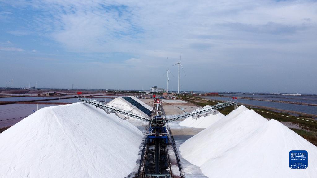 天津長(cháng)蘆漢沽鹽場(chǎng)的一處鹽坨(9月14日攝,無(wú)人機照片)。