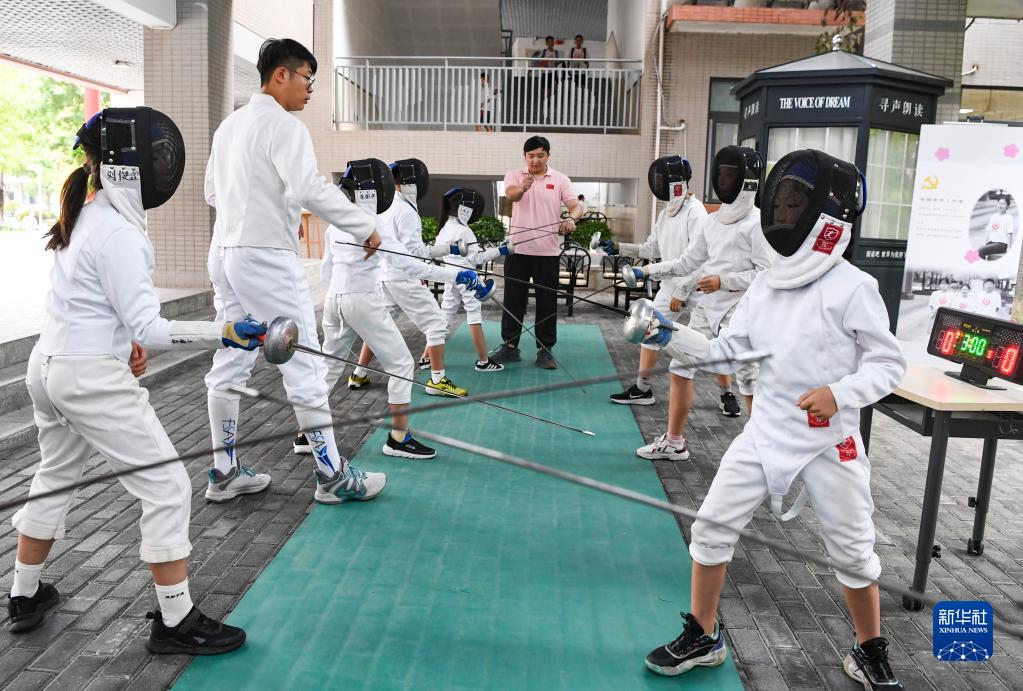 9月14日,重慶謝家灣學(xué)校學(xué)生在老師的指導下練習擊劍。