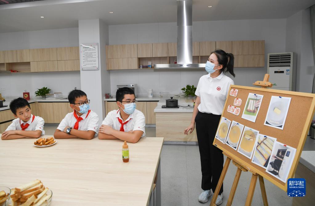 9月14日,重慶謝家灣學(xué)校學(xué)生在學(xué)習烹飪。
