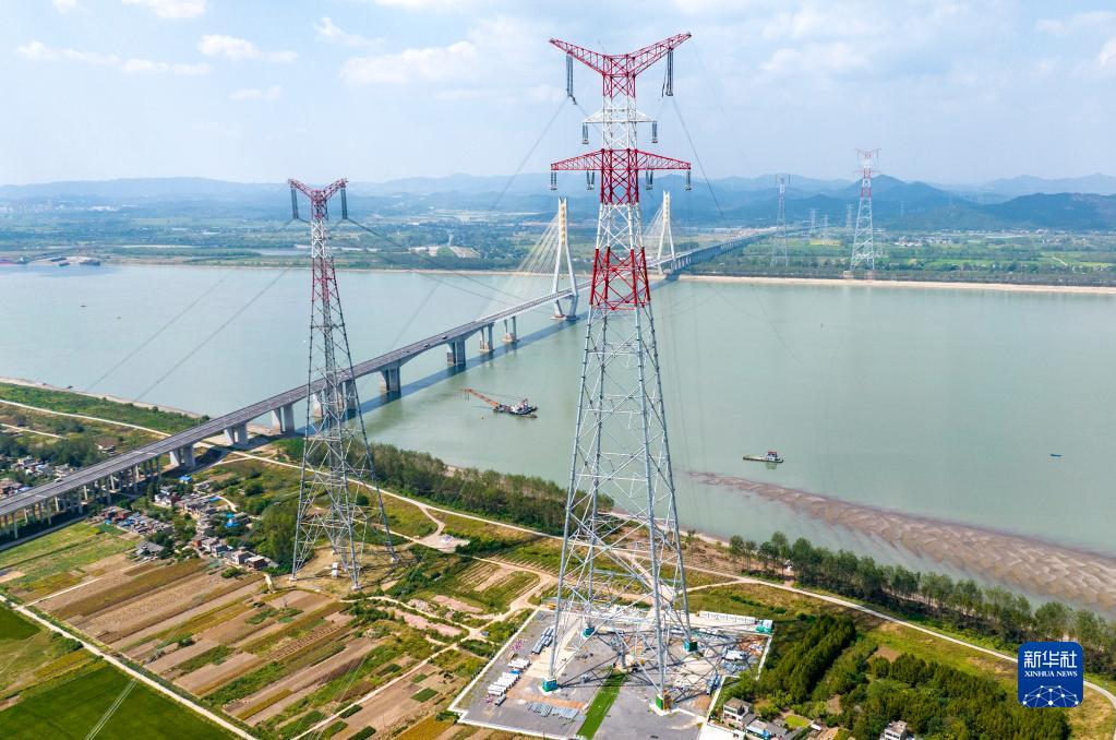 新華全媒+丨“西電東送”大動(dòng)脈 特高壓白浙線(xiàn)安徽段長(cháng)江大跨越線(xiàn)路貫通