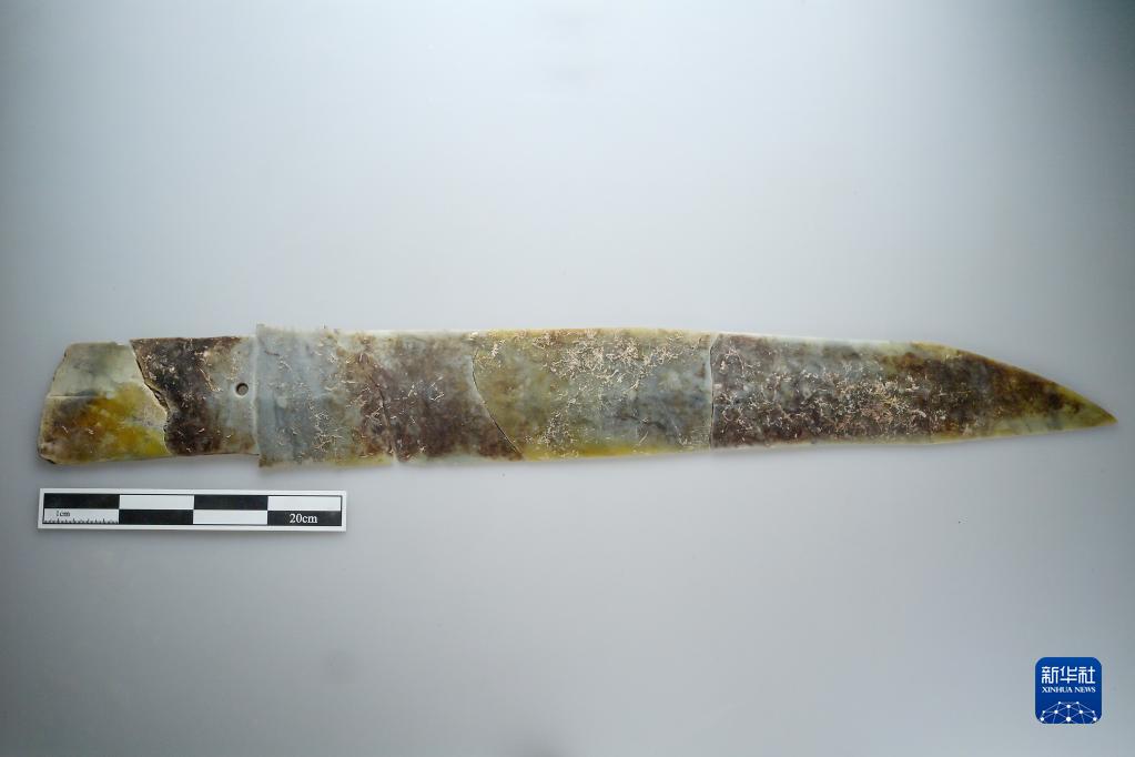 這是2021年11月拍攝的河南鄭州商都書(shū)院街商代墓地出土的玉戈。