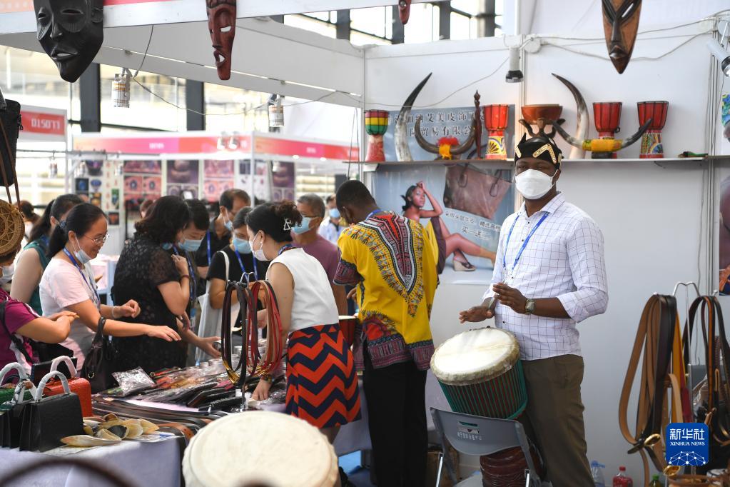 9月18日,一名加納客商在東博會(huì )“一帶一路”國際展區敲鼓招徠觀(guān)眾。