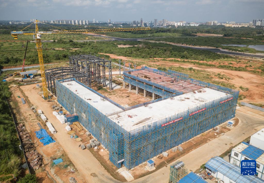 這是在海南文昌拍攝的建設中的衛星總裝測試廠(chǎng)房項目(無(wú)人機照片,9月17日攝)。