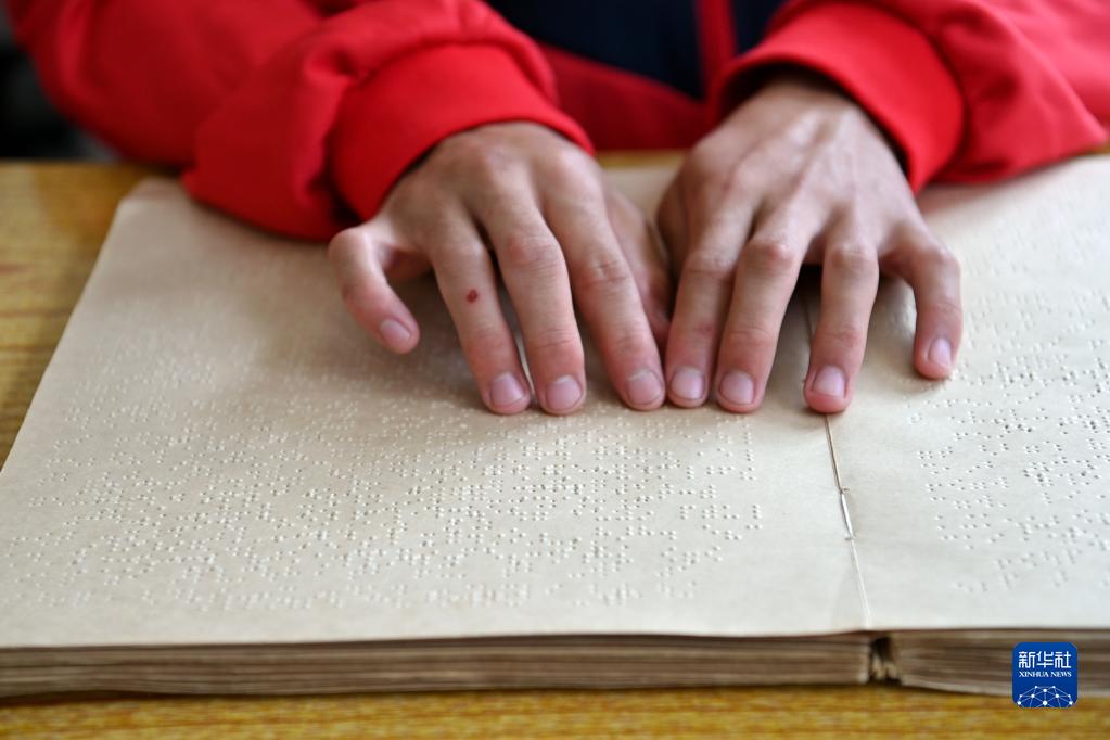 陵川縣盲人曲藝宣傳隊隊員在學(xué)習盲文(9月15日攝)。