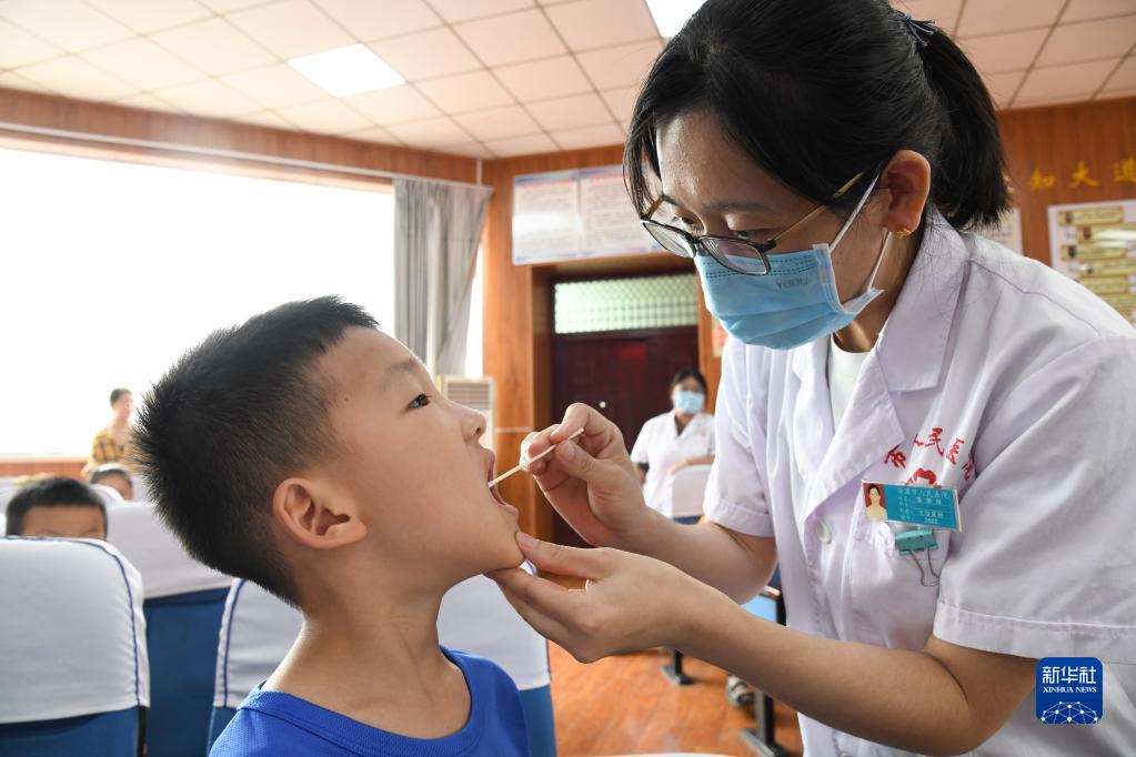 9月19日,在河南省濟源市濟水東園學(xué)校,濟源市人民醫院口腔科醫生為小學(xué)生檢查口腔健康狀況。