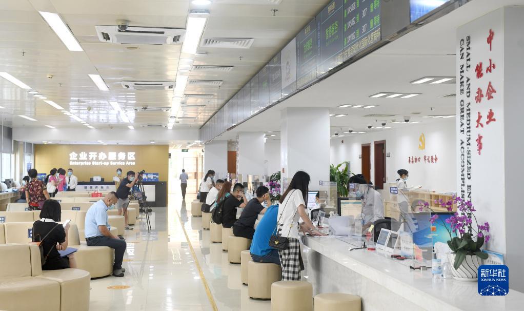 市民在廣州市開(kāi)發(fā)區政務(wù)服務(wù)中心企業(yè)開(kāi)辦服務(wù)區辦理業(yè)務(wù)(2022年9月15日攝)。新華社記者 盧漢欣 攝
