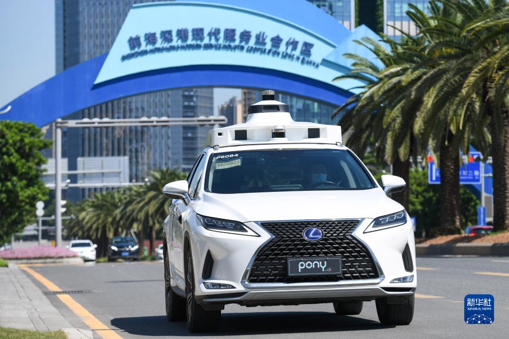 小馬智行自動(dòng)駕駛汽車(chē)在深圳前海道路上行駛(2022年8月1日攝)。新華社記者 梁旭 攝