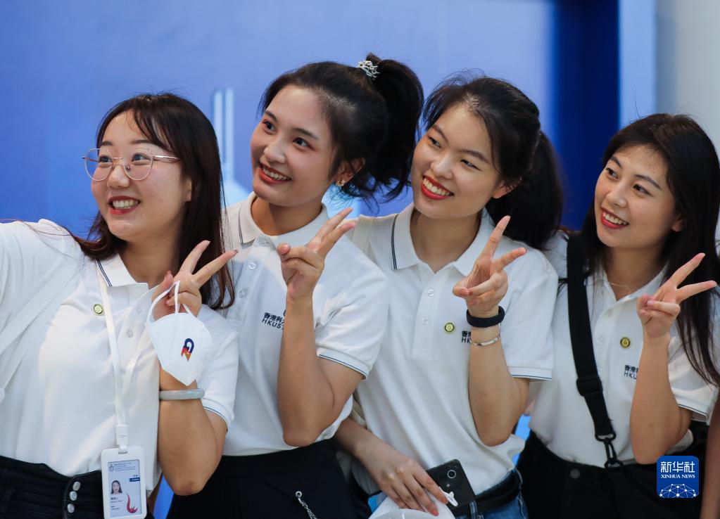 香港科技大學(xué)(廣州)新生在開(kāi)學(xué)典禮前合影(2022年9月1日攝)。新華社發(fā)